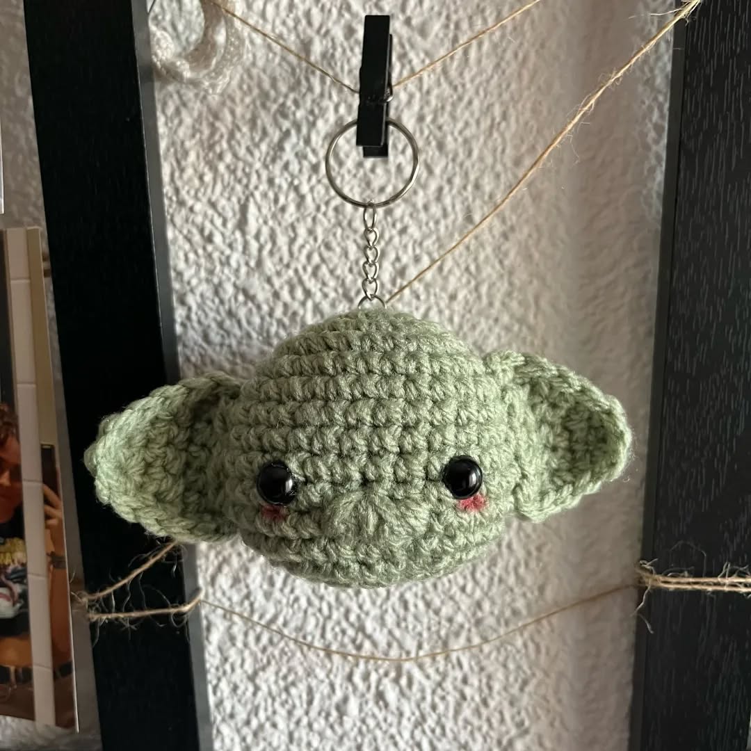 Este llavero de Baby Yoda está elaborado a mano con cuidado y dedicación. Su diseño adorable y compacto lo convierte en el accesorio ideal para acompañarte siempre: en tus llaves, mochila o bolso. Único, ligero y lleno de encanto, es perfecto como regalo especial o como detalle para los amantes de este icónico personaje.