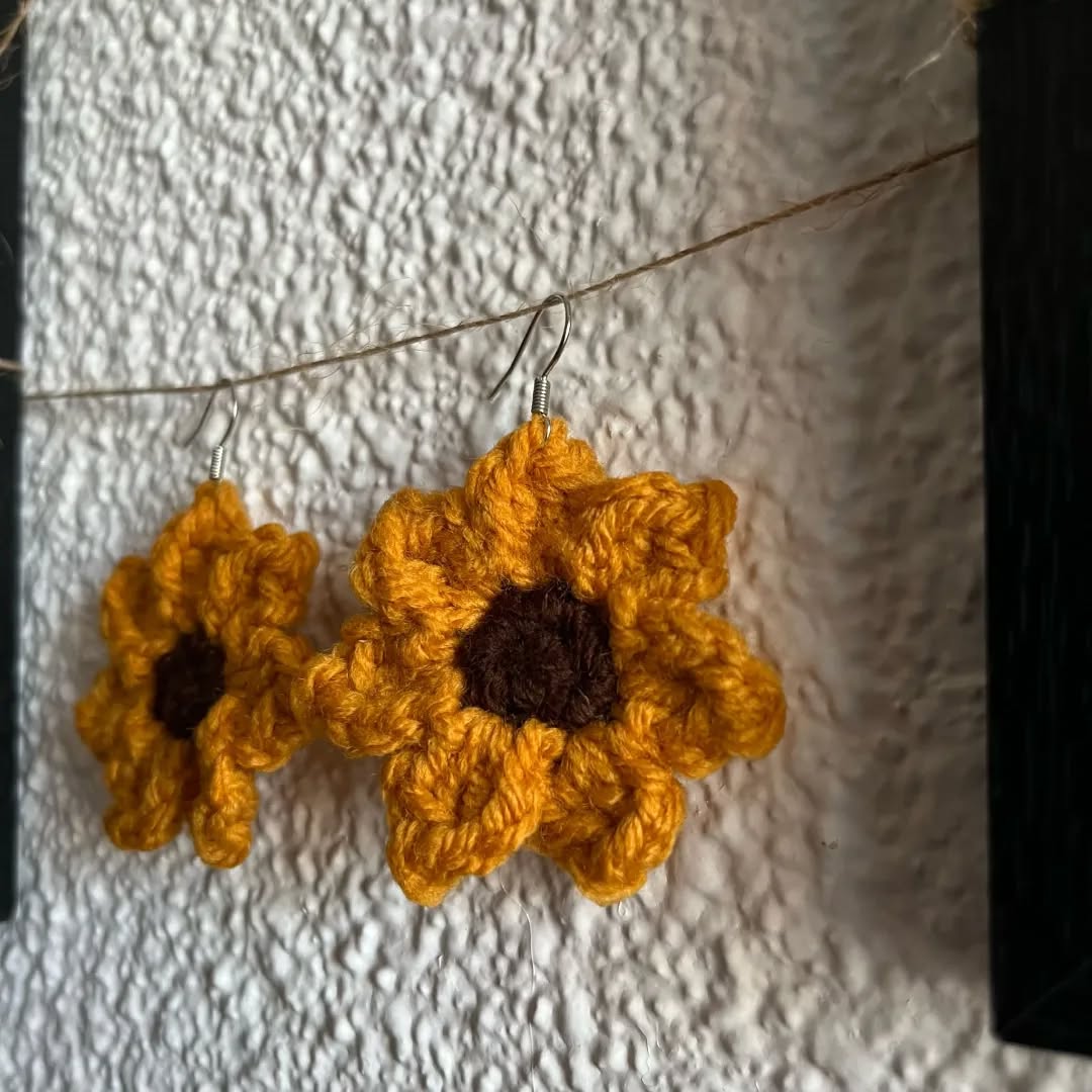 Pendientes de girasol, delicados y hechos a mano, perfectos para darle un toque alegre a cualquier look 🌻.